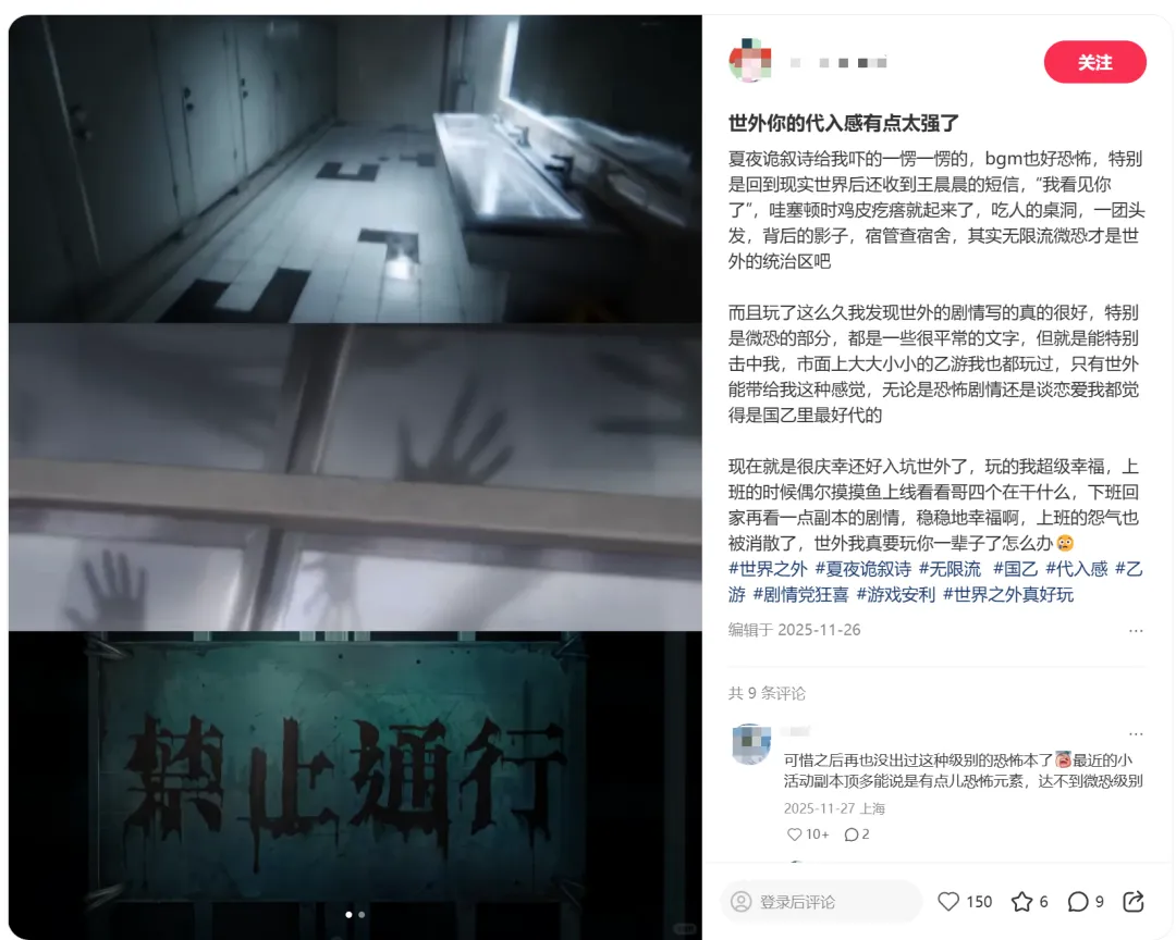 谈及2026年热度靠前的品类,二次元都市开放世界、模拟经营、女性向正当头。那题材呢?可能是微恐或者说适用边界更广的恐怖题材。