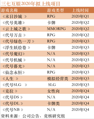 从本期财报内容来看,三七互娱在核心业务方面也做了充分的准备。 2020年,三七互娱将发行三十余款精品游戏。