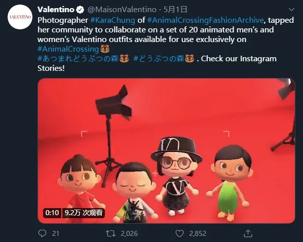 为了尽可能将顾客的目光从线下拉到线上,华伦天奴以官方身份与「动森时尚档案馆」的设计师合作,将其品牌下的 2020 春夏系列服装复制到《动森》的世界里。