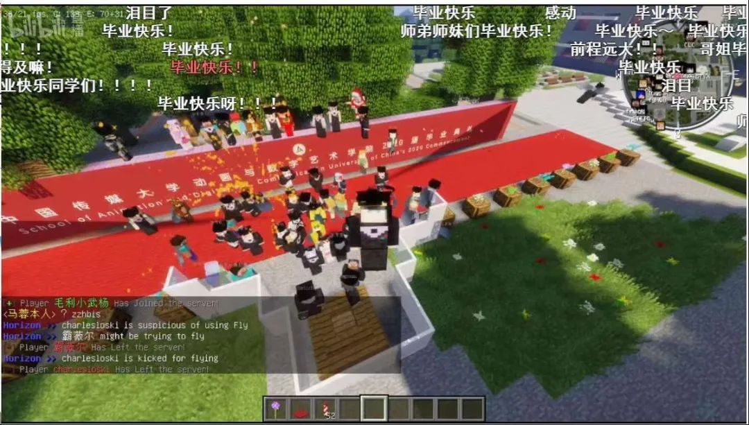 竞核曾在【《我的世界》复刻中传、哥大校园实景,云毕业成新宠》】一文中提到,中国传媒大学、哥伦比亚大学等在《我的世界》中的“复刻版”校园里举办了“云毕业典礼”。