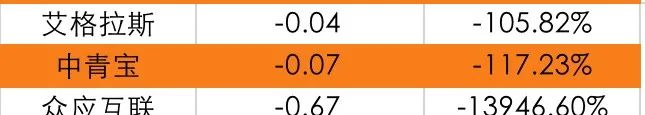 相比众应互联的断崖式下跌,中青宝也游走在崩溃的边缘。期内,公司净利润为-0.07亿元,同比增长-117.23%。