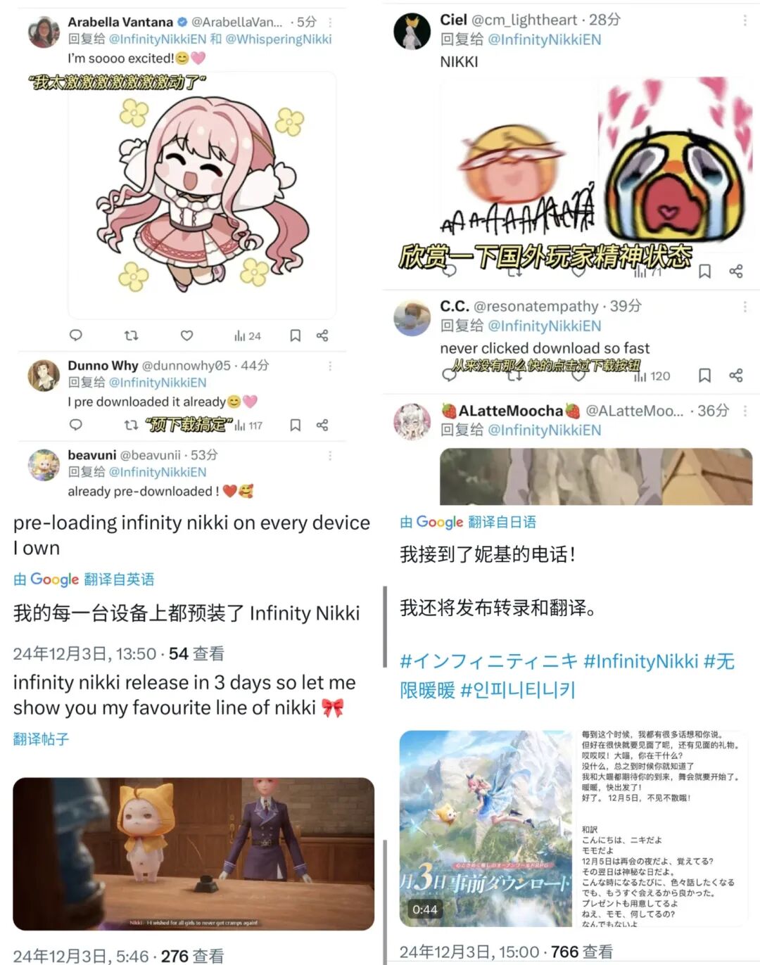 海外“暖妈”的热情一点也不比国内低,有人掏出测试期游戏截图回味台词,有人在家里的每台设备上都预下载了《无限暖暖》。
