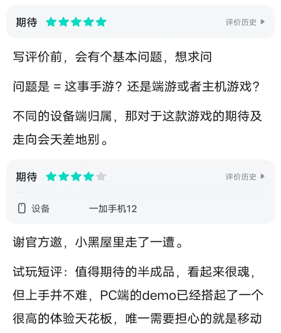 因此,尽管参与测试的玩家对《万物契约》的游戏品质基本都是认可的,但考虑到游戏可能存在的抽卡机制、跨端适配问题,大多都只给出了“未来可期”的评价。
