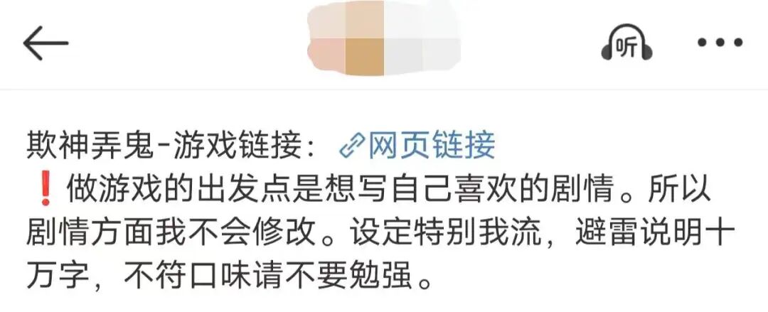 不过话说回来,这些乙游或许本来就不是为了满足所有人的需求而做的。点进制作组们的主页介绍,大部分人都是在读学生党/兼职制作,兴趣导向的因素可能要大于市场导向。女性向像素RPG《欺神弄鬼》的制作者就打下超1000字排雷说明,并表示“不要对我们有过于沉重的期待啦”