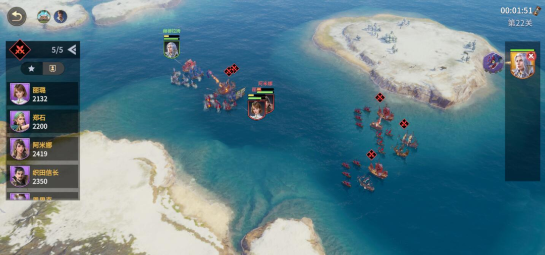 当我们驾驶船只在地图航行时,不难发现会有一些血量较高的精英级怪物,比如初级地图中有一个需要玩家达到150战力(初始100战力)才能挑战的BOSS,挑战成功后玩家即可获得前往下一等级地图的权限。