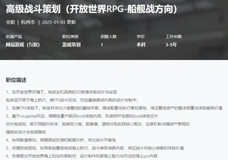 根据招聘信息来看,网易此前就有进行过一款3A开放世界海上冒险RPG游戏的招聘,就网传信息来看,可能是由网易互娱Joker事业部研发;去年12月,灵犀互娱控股的苏州营火信息技术有限公司获得了一款名为《大航海时代:传说》的进口游戏版号,从产品名上看应该是《大航海时代 Online》的正版授权游戏;同时,据知情人士透露,乐元素也在研发一款类似育碧《碧海黑帆》的航海题材游戏。