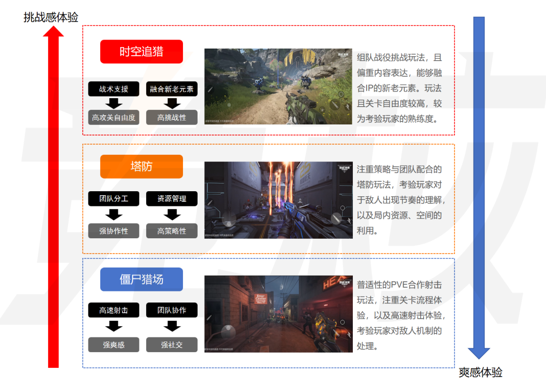 除此之外,“时空追猎”本身也是一个相对有潜力的PVE玩法,首先它不同于僵尸猎场、塔防模式,并不会受到题材和玩法的限制,可以为后续的内容、玩法发挥留出了充裕的空间,其次战役玩法的关卡较为开放,本身有着较高的攻关自由度,可以设计不同的攻关方式来匹配游戏的长线运营模式。
