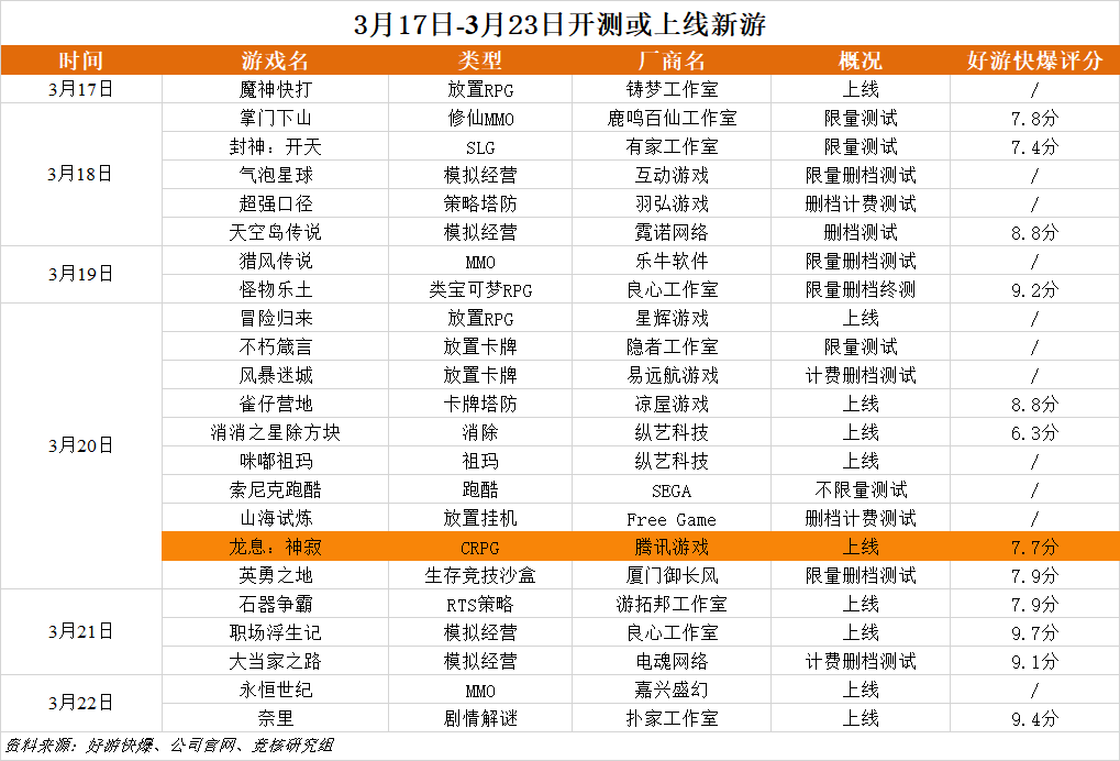 下周开测或上线的游戏种类较多,其中值得关注的产品有腾讯游戏CRPG《龙息:神寂》。