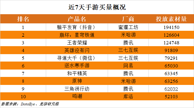 除此之外,腾讯、网易和米哈游旗下的旗舰产品仍保持高素材量投放,买量广告基本成为其常态化营销手段。