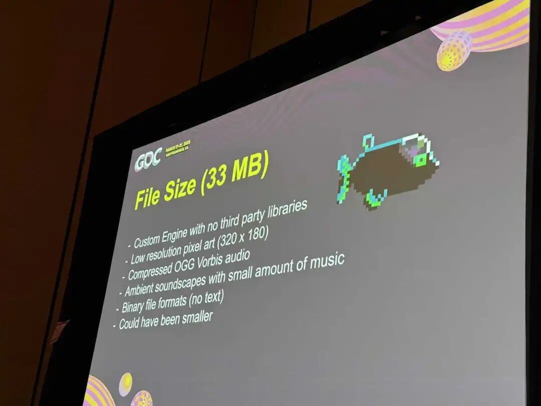 他采用了一种非常高效的数据压缩和渲染方式,使游戏在仅 33MB 的体积下就实现了丰富的光影效果、流畅的动画和复杂的谜题设计。