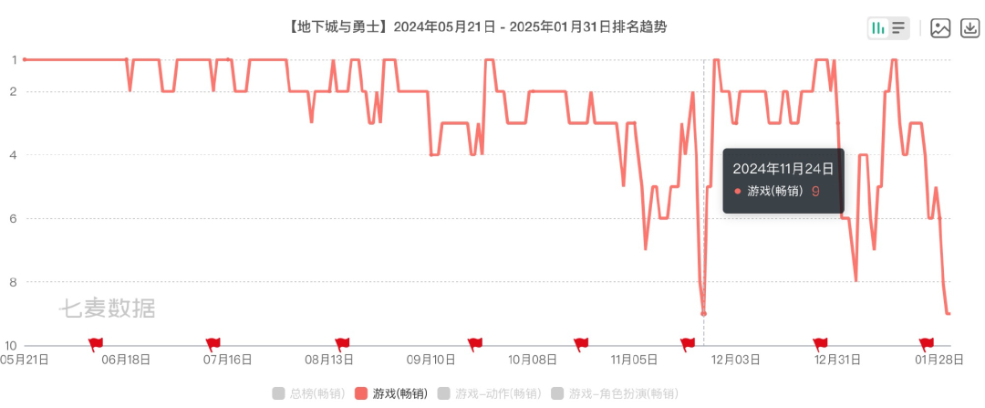 Niko Partners分析师曾透露,《DNF手游》在中国区的收入高达25亿美元(约合180亿元人民币)。此外,根据Sensor Tower报告显示,2024年5-12月期间,该作一直位居全球iOS手游收入榜第二位。这一系列的亮眼成绩,无疑为腾讯2024年全球游戏收入的强劲增长贡献了重要力量。