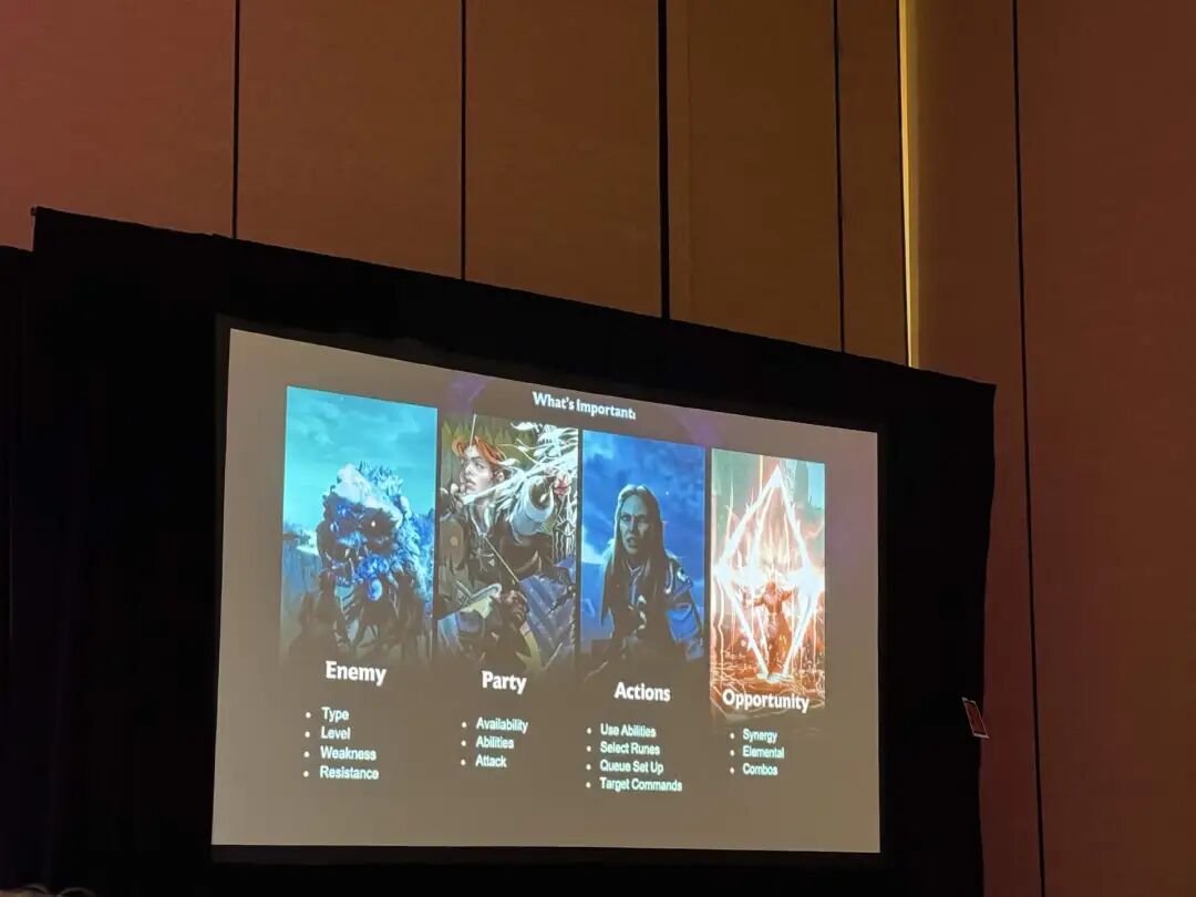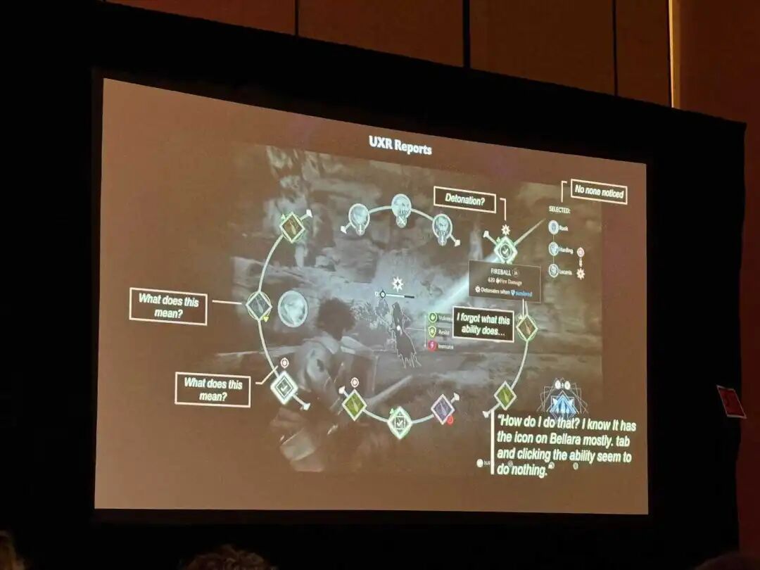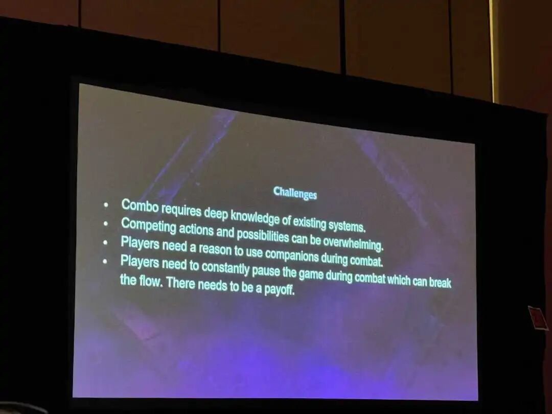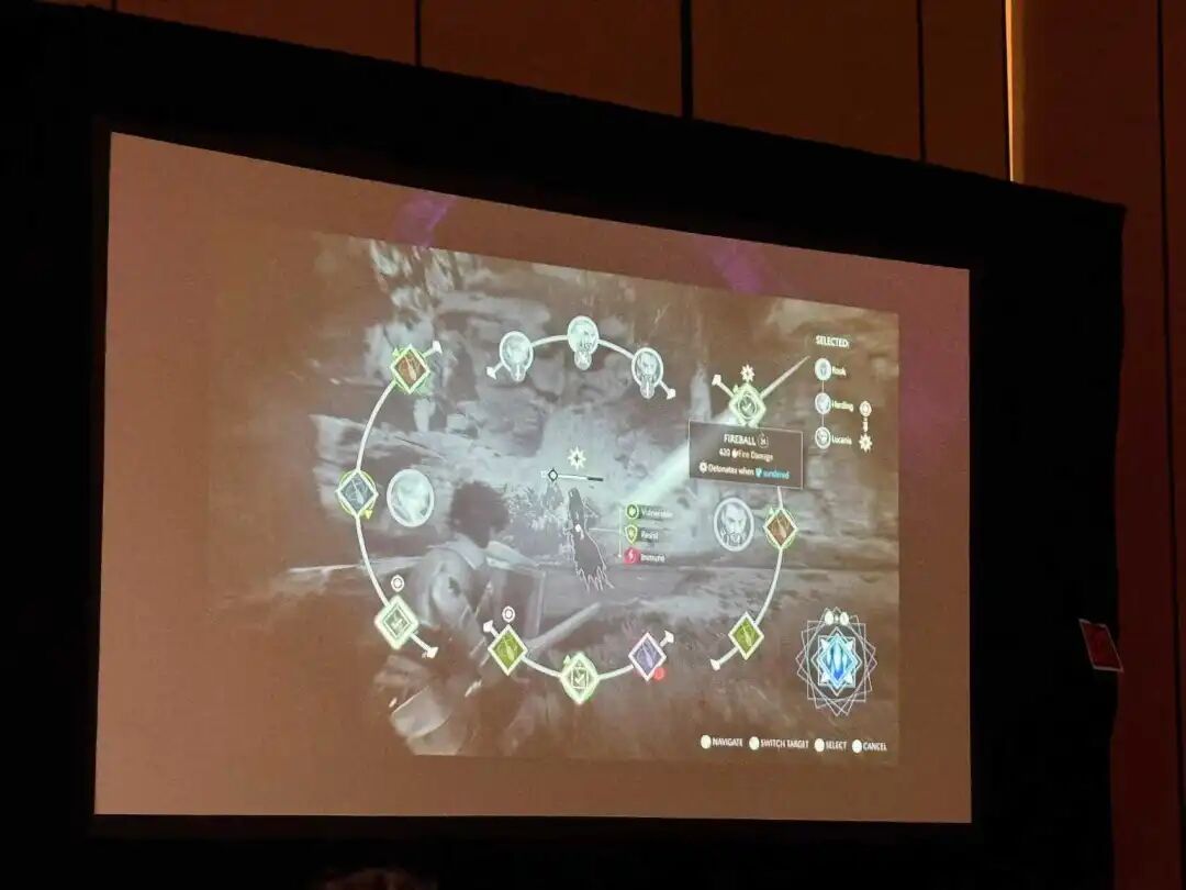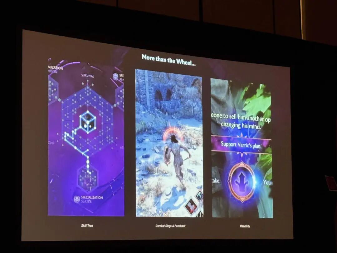 在演讲开始时,Bruno 指出了《龙腾世纪4》实现平衡游玩深度与易用性的秘诀,从深度方向可以理解为战斗内错综复杂的玩法、选择和后果、发展关系;至于如何让玩家更加易于理解游戏内复杂的战斗机制,游戏则提供了战斗轮盘功能,允许玩家暂停并战略性地管理战斗。