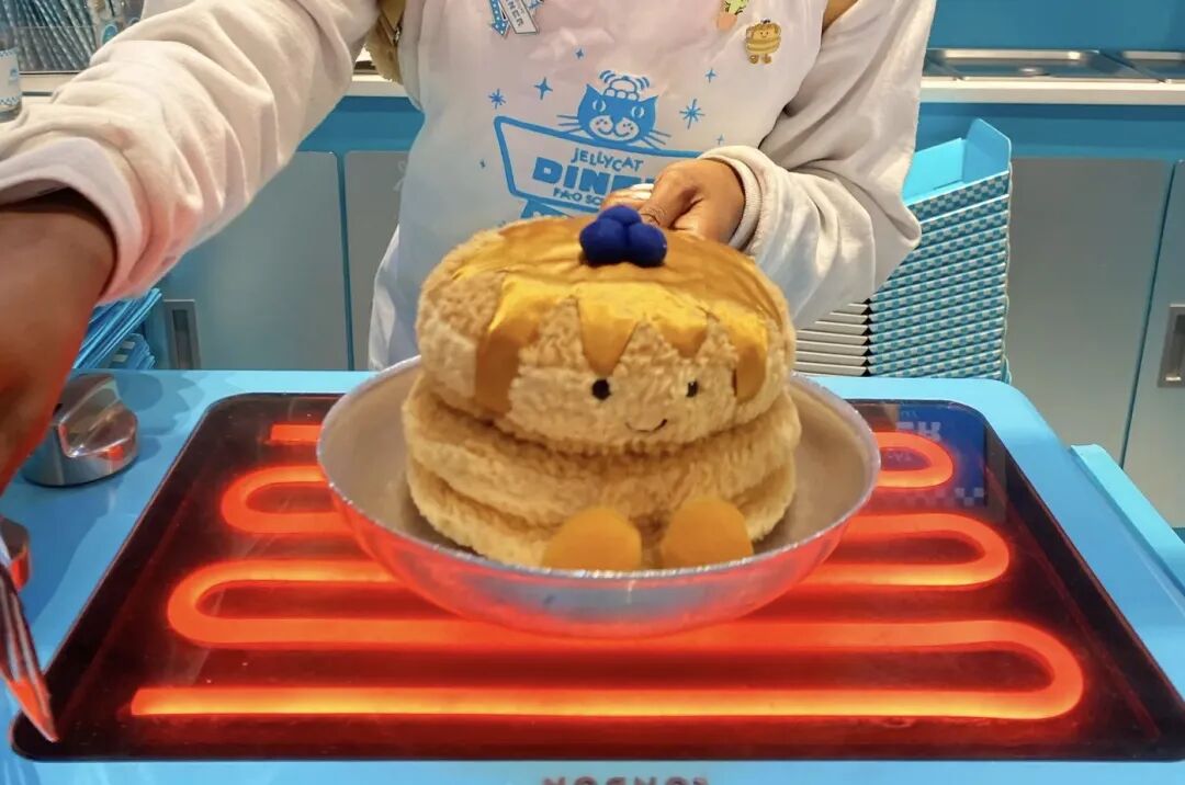 于是,店员就会拿起空空如也的奶油喷射瓶,一边人工发出“噗呲”的喷奶油声音,一边认真地在玩偶头上比划了一圈又一圈。