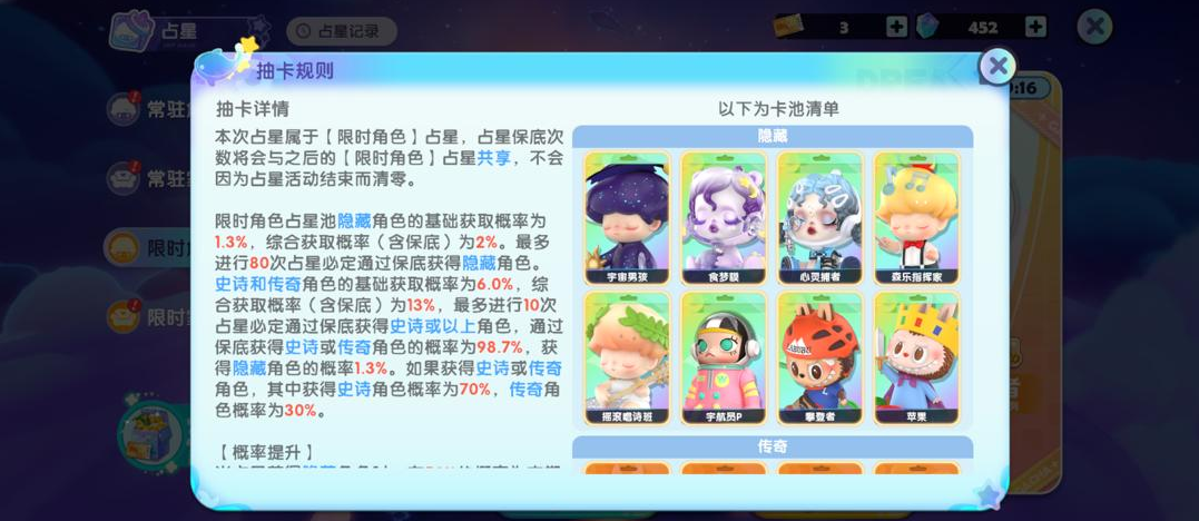 快消IP凭借盲盒机制和情绪价值击中了年轻人的消费需求,对应到衍生游戏里,基本也沿用了这套逻辑。不过,正如《梦想家园》定价引起的矛盾,笔者并不认为盲盒能简单粗暴对应为抽卡,相反,抽卡如今可能还是游戏的劝退点。