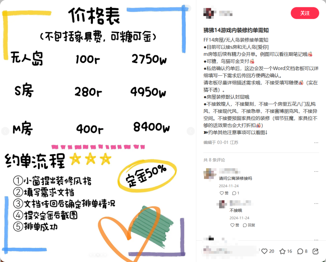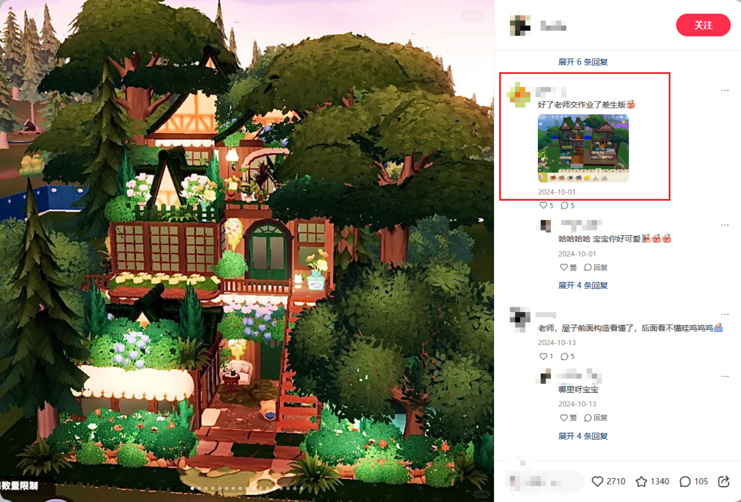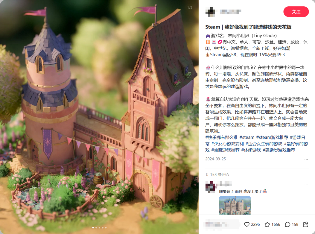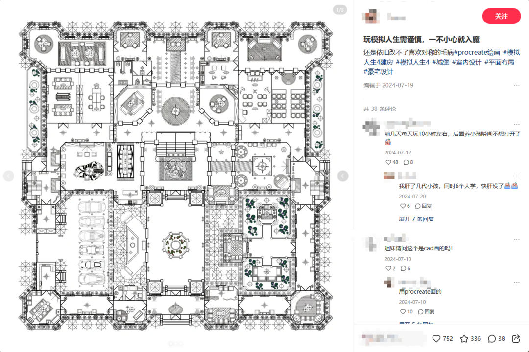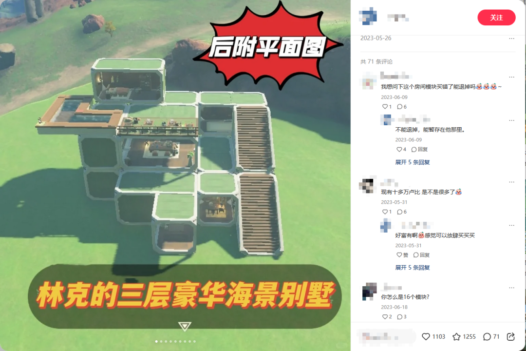 《模拟人生》终于迎来了一位强劲的竞争对手! 由蓝洞出品的《inZOI》在3月28日上线后便登顶Steam热销榜,目前依然排名前三。许多玩家在评论区中表示尽管还有需要亟待改进的部分,比如闪退、互动内容不够丰富等问题,但依然愿意支持这款新的生活模拟类游戏。而游戏的美术资源和AI功能则广受好评。 而在此前,官方还移除了游戏中的Denuvo(一种防篡改技术),以此支持玩家对《inZOI》的MOD创作。 尽管《inZOI》制作组多次声明他们不想做《模拟人生》的竞品,并认为《inZOI》暂时还无法和《模拟人生》媲美。但不可否认的是,游戏内的核心玩法确实透着一股“模拟味儿”。 在笔者看来,《inZOI》的出现其实是件好事。多年来,《模拟人生》一直占据了大型生活模拟游戏领域的“统治区”。并非从未出现过竞品,而是其余游戏要么跳票出局,要么在自由度和内容量上没有《模拟人生》丰富。 尽管多数玩家对《模拟人生》的高价资料片以及许多不如MOD精美的服饰和家居诟病已久,但最终还是回到了“模拟城市”,继续“模拟市民”的生活。 直到《inZOI》的出现。 多数玩家在《inZOI》正式发售前就已参与了测试或EA(抢先体验版)体验,精致的风格无疑折服了很大一部分玩家。其中,建房效果的渲染同样让人惊叹,柔和的灯光、逼真的装饰以及可以自定义的家居,再度燃起了建房玩家们的热情。 而在游戏中拥有一间房,似乎是在“过家家”类的生活模拟游戏中必不可少的环节。 沙盒之内,沉浸建房 不管是《inZOI》还是《模拟人生》,只要游戏角色有基本的生理需求,且拒绝体验风餐露宿的生活,那就至少需要一间能够遮风挡雨的房子。 不太讲究的玩家通常选择建一栋极简的实用性住房。例如在《我的世界》的大草原上打造一间“麻雀虽小,五脏俱全”的“陋居” ,每一块材料都极具实用价值,完全能解决基础的温饱问题。 也有玩家致力于给游戏角色一个舒心的家,自己住的差不要紧,游戏角色的海景房是一定得安排上。《塞尔达:王国之泪》建造私人住宅的迷你挑战显然预料到了部分玩家对建房的热情,提供了武器架房、弓架房等各种房间任玩家选择。 最终究极手勤勤恳恳地搞起建造,一座座豪华海景别墅平地而起,林克在海拉鲁获得了兼具实用性和美观度的豪宅。 只要条件允许,积极整活的玩家们总能找到发挥创意的空间。即便置身在环境艰苦的末日环境,玩家这位上帝也会力求让游戏小人们住得舒服、住得体面。唯一限制玩家建房行为的除了时间,也许就只有想象力了。 再追求极致一点,建房就会成为一场“永无止境”的工程项目。建房玩家往往倾注大量时间和心血来打磨每个细节,力求将自己的脑内构想转化为游戏建筑实体。这些建房大师还会主动公开自己的建筑图,和其他玩家共享建房心得,俨然已经玩出了一定专业度。 (虽不能按此图建造现实的房子,但建造游戏中的房子已经绰绰有余) 和“种下相同的种子便能收获相同作物”的种田模拟不同,建房模拟不仅需要房屋外立面的设计,还需要对内外饰和材质搭配进行规划,不同材料的组合方式所导致的最终效果可能天差地别。这意味着,热衷建房的玩家为了建造想象中的房子,会心甘情愿地在游戏中花费更长的时间。 这一点似乎是厂商们喜闻乐见的现象:深度创作的玩家提供大量优质UGC内容的同时,提升了游戏粘性。而玩家们的“晒房帖”在社交平台上传播时,既能增强游戏的曝光度,又能吸引潜在玩家的好奇,无形中为游戏做了一次宣传。 围绕建房形成的玩家互动更是和谐友好,跟贴的大多是虚心求教建房问题以及复刻以后“交作业”的回复。这种基于创作共享而形成的社群氛围会促使围观的潜在玩家主动下载游戏,从而形成一种游戏二创的良性循环。 不是房子,是创意容器 在许多游戏都在想方设法推行轻量化以留住玩家的当下,建房模拟也不例外。 有游戏从最终呈现效果入手,直接在家园系统里提供全套样板房,只要全款(游戏货币)购入就能拎包入住,主打一个省心省力。也有游戏提供相应的创意工坊,允许玩家进行“零元购”,避免游戏中捉襟见肘的尴尬。 有些游戏则从玩法开始完善,例如,曾在小红书建造游戏推荐中风靡一时的《林间小世界》,就被玩家们称为手残党的福音。游戏玩法类似《城镇叠叠乐》,但提供了更自由及智能的建房系统。把道路连在墙壁上会自动生成方便行走的台阶、划出的河道里会智能生成错落有致的水文地貌、砖块能根据房屋结构补齐调整……治愈系的画风搭配每个组件的环境音效,整个建房过程像是在享受一场ASMR。 (可能唯一的缺点就是,这个世界里没有“人”。) 新出的《inZOI》同样采取了缓解玩家建房压力的设计,在建房系统里内置了不同户型的参考蓝图,玩家能够像拼拼图一样,把每个组件往相应的参考线上放。 不过,总有不满足于样板房但又屈服于建房门槛的玩家,这部分玩家对想象中房子的需求催生出了“游戏房屋装修师”一职,且还颇具市场。 装修师贴出自己建房的“作品集”和约单流程,有相应需求的玩家自行挑选喜欢的装修风格,谈妥价格后等待几天,再回到游戏时,便可拥有一套定制房。与其费时费力一整天去建一个动线诡异且外观杂乱的房子,让“专业的人做专业的事”似乎对这部分玩家而言更具性价比。 到这一步,游戏中的房子完成了从“功能