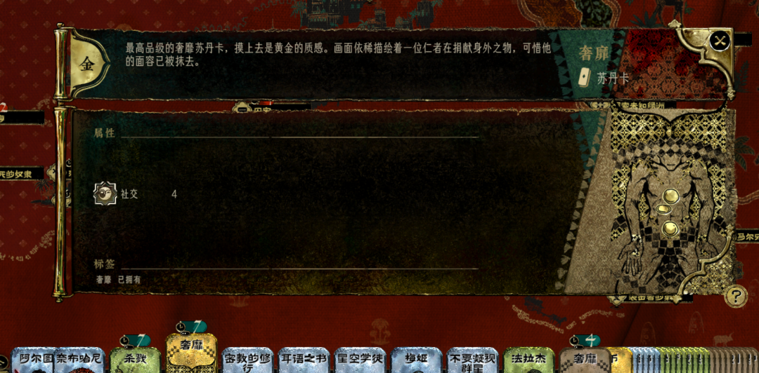 比如前文中的与猫猫涩涩,又或者在鬼屋中与妻子涩涩便会获得2张诅咒,此外玩家还可以品鉴自己与苏丹的同人瑟图。玩家也可以经过操作,逃离这个国家,或者尝试把苏丹赶下王座,成为这个国家的新王。