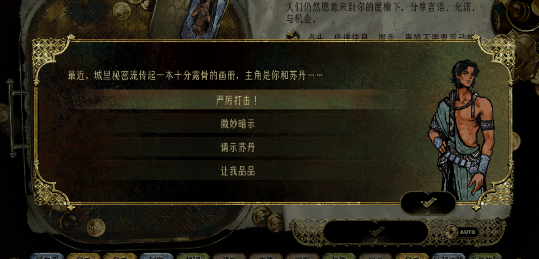 实际上,比起《博德之门3》那样的CRPG游戏,《苏丹的游戏》也更像是一款拥有高随机性的“回合制策略经营卡牌”游戏。玩家想要探索不同的剧情和结局,更多的是需要对自己资源的严格管理,让效益最大化,而非突发奇想秀操作。