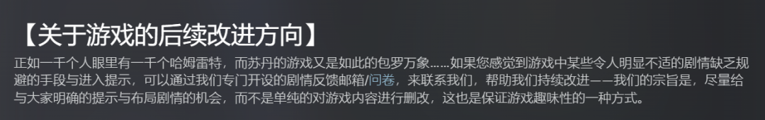 事实上,即使我们将“楠桐”更换为其他内容,比如玩家在打纯爱线时,突然一个不明所以的选择上演NTR大戏。或者在打善良线时,一个选择让你成为人屠,这种突然且毫无提示的大转折,我相信即使是那些饱经风霜的牢玩家也会感到暴躁。这或也是官方随后宣布将加入提示的原因之一。