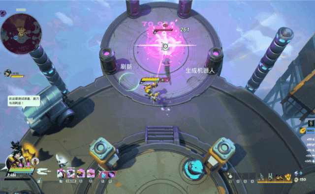 《头号追击》采用了MOBA游戏的俯视角模式,这意味着它不会有3D FPS/TPS中硬核的射击设计。虽然该作中的基础攻击仍为射击,但更偏向2D射击对瞄准方向的精度把控。基于MOBA化的英雄设计,让游戏战斗更强调战斗机动性和团队配合。