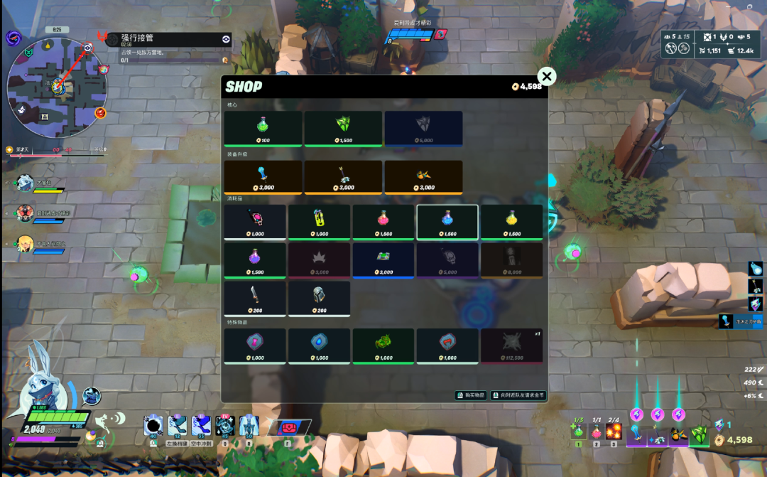 不过,在这些偏直观的呈现外,游戏也融合了自走棋/肉鸽游戏的“随机性与构筑机制”。例如游戏每一局会随机产生能影响正常比赛的风暴异变,包括每30S进行一次覆盖全图的神域侦查;装备可选择不同能力发展方向,强化吸血能力的压榨者利刃、能连跳的鞋子等;又或是击败陨星野兽时掉落的灵魂增益,可提供破甲、传送等团队Buff等。