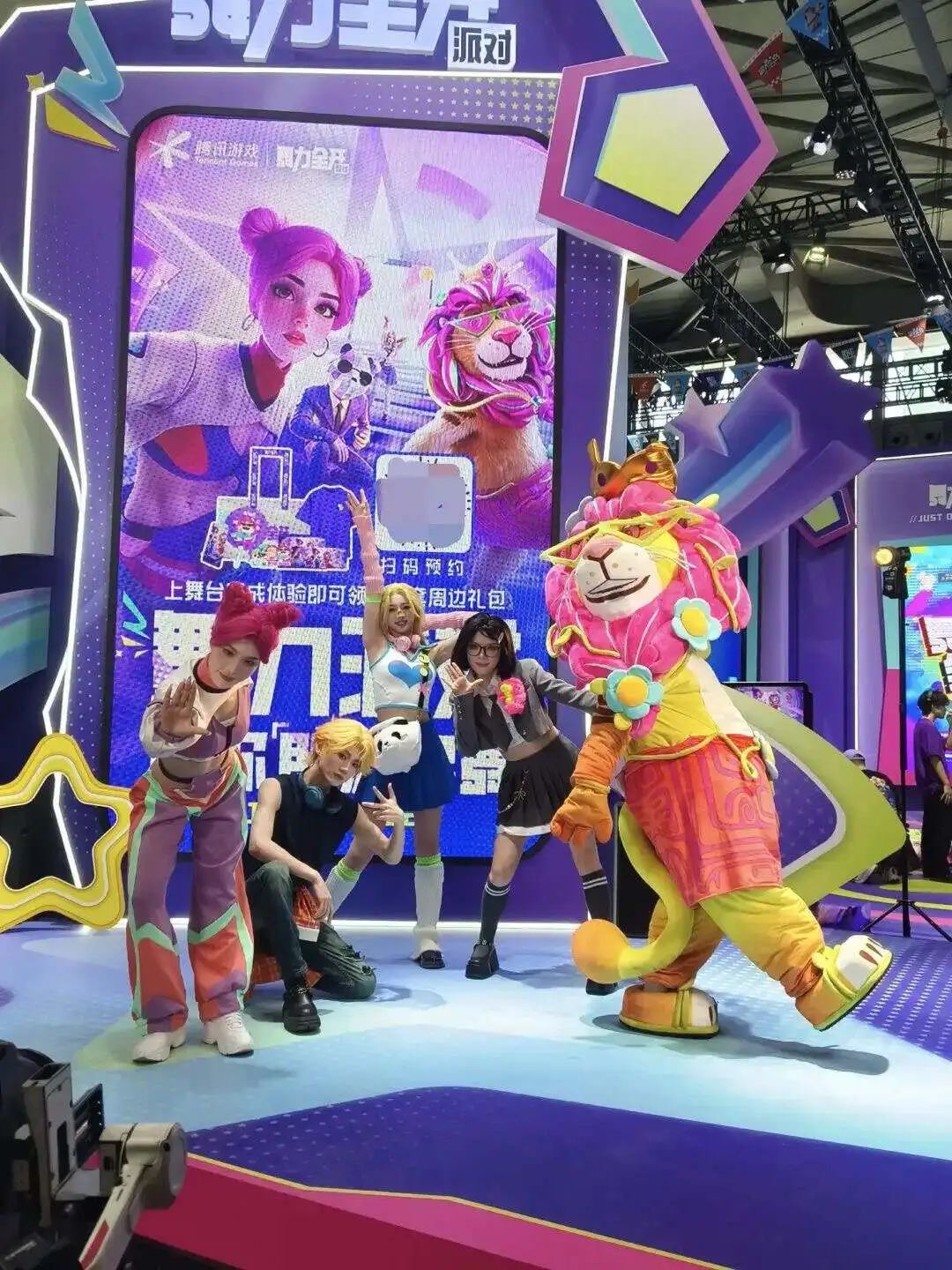 Walking further out, the big stage set by Lilith's game falls into view. Sure enough, this year's Lilith stage was arranged according to the visual effects of "Farlight 84." The oversized character installation in the center was especially prominent, and the whole stage looked very cool with sleek purple and fluorescent green.