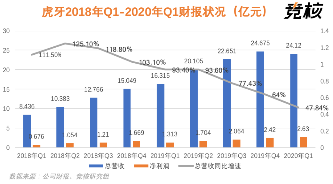 第一季度总营收为24.12亿元,经营利润为人民币2.27亿元,净利润为人民币2.63亿元,同比分别增长136.5%和100.7%。虎牙已连续十个季度实现盈利。