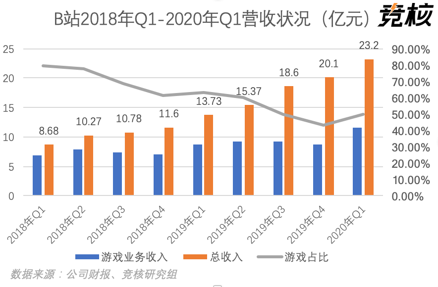5月18日,B站公布2020年第一季度财报,其2020年第一季度营收达23.2亿元人民币,同比增长69%,游戏业务收入则同比增长32%,达11.5亿元。B站上市以来,季度营收持续保持增长态势。