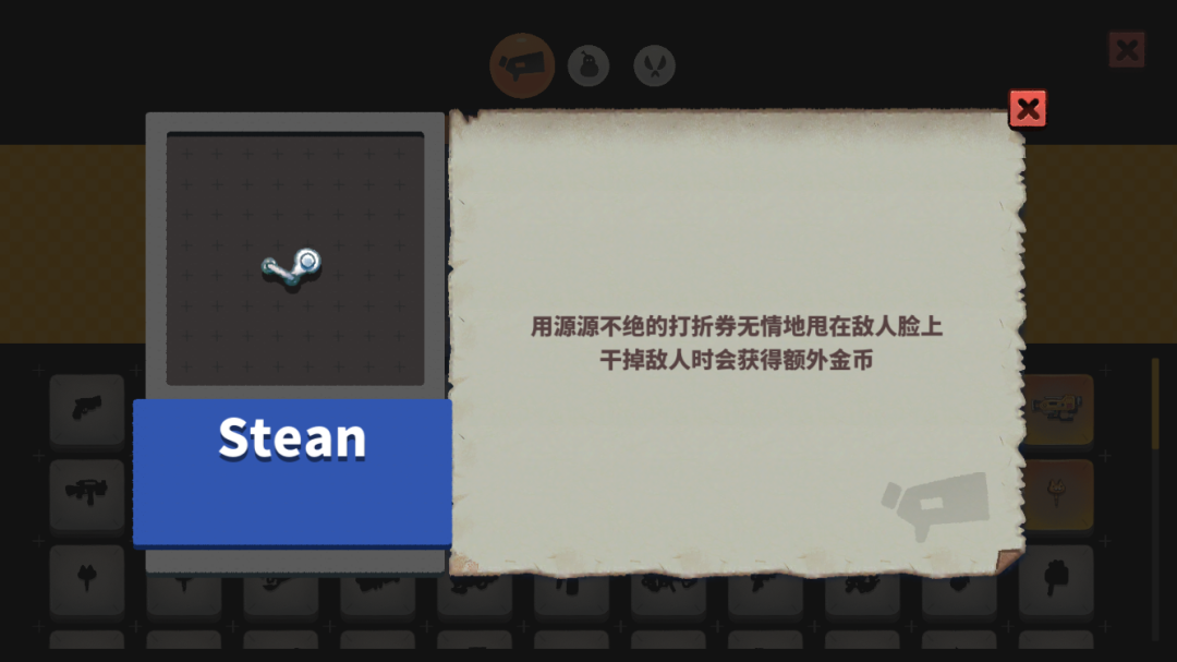 此类武器往往有着出人意料的能力(极强或极弱)和让人哑然失笑的隐藏彩蛋,能够让玩家在紧张的战斗之余会心一笑,感受到一款rouge-like游戏应有的趣味。