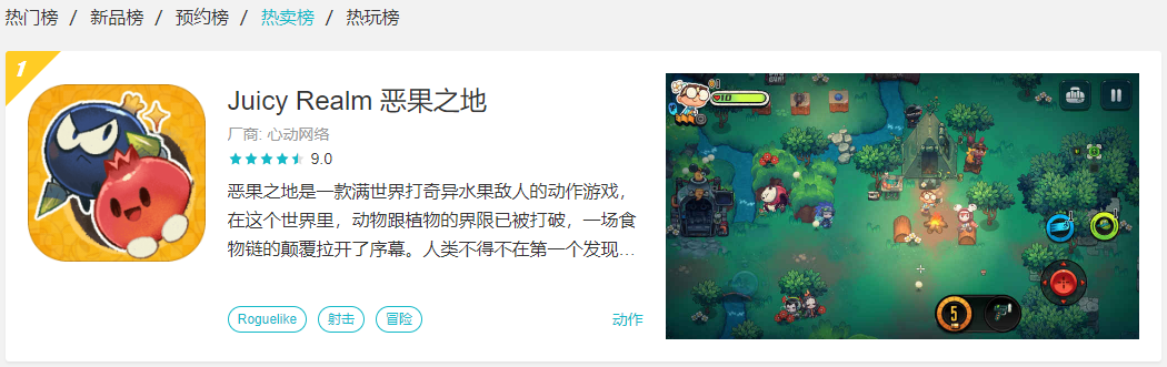 这款横板射击游戏名为《恶果之地》(Juicy Realm),由国内团队宇宙罐SpaceCan独立开发,发行商则是曾经一手带出横板巅峰《ICEY》的心动网络。