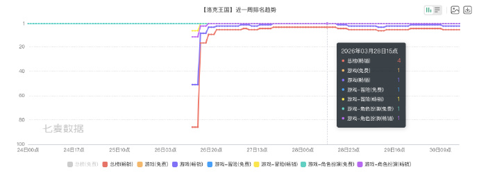 竞核3月30日消息,《洛克王国:世界》于3月26日全平台上线,开服前全网预约量突破6000万。游戏上线后市场表现强劲,首日新进用户超过1500万,并在次日即3月27日登顶IOS游戏免费榜与畅销榜双榜第一。官方于3月28日宣布,为答谢玩家,将向4月12日前注册的用户发放全服感恩福利。至今,游戏仍稳定在IOS游戏畅销榜上前三名。