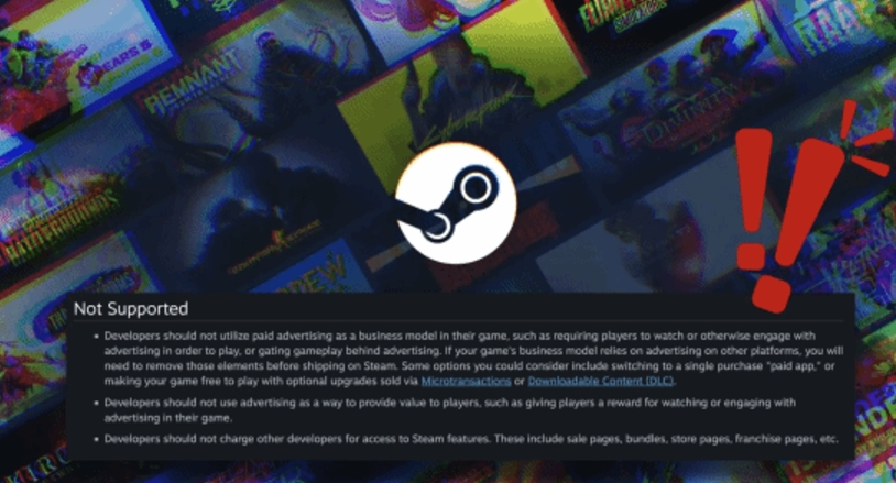 竞核2月11日消息,Steam将禁止强制玩家观看广告的游戏:日前,Valve 公司更新了 Steam 平台的服务条款,明确禁止强制玩家观看或参与广告的游戏在该平台上线。新规中提到开发者不得利用付费广告作为商业模式,例如要求玩家观看广告才能继续游戏,或者将游戏内容设置在广告之后解锁。此外,游戏开发者也不得向其他开发者收取使用Steam功能的费用,如销售页面、捆绑包、店面以及特许经营页面。
