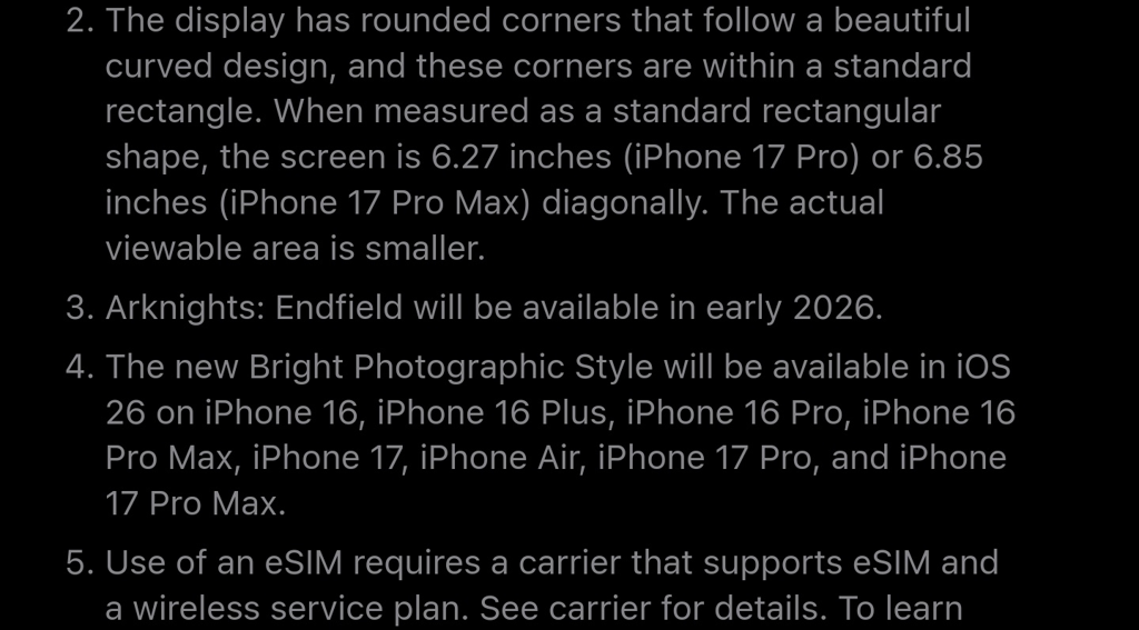 竞核9月10日消息,明日方舟终末地2026年初上线:在今天凌晨的苹果发布会上,《明日方舟:终末地》作为iPhone17系列的性能演示游戏登上苹果发布会,这也是《明日方舟:终末地》移动端首次在大众面前亮相。同时,苹果的英文官网上显示,《明日方舟:终末地》将于2026年初上线,不过中文官网并未释放这一消息。