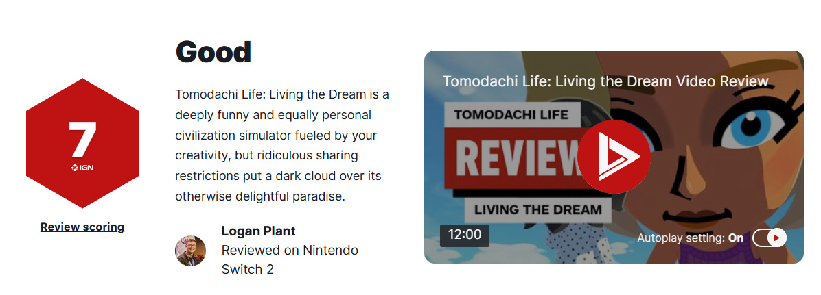 竞核4月16日消息,任天堂生活模拟新作获IGN7分:今日,任天堂旗下生活模拟游戏《朋友收集:梦想生活》正式发售,媒体评测也在发售前夕解禁。