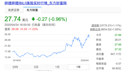 2020年4月17日,哔哩哔哩股票收盘价29.00美元,市值100.2亿美元,提早度过了陈睿定下的生死线,此后数日保持了小幅增长。