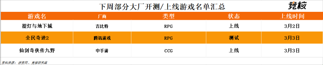 下周(3.1-3.7)开测新游: