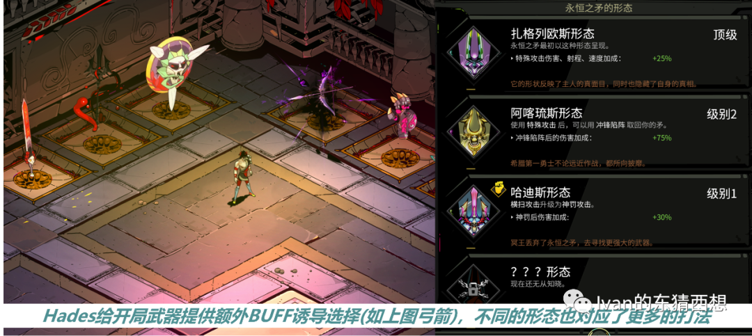 一直有种说法叫“游戏就是一系列有趣的选择”,这句话用在Rogue上就恰如其分:我们的每次选择都是风险与收益的博弈,游戏体验就在这一次次的博弈中产生,比如用什么武器/角色开局,走哪条前进的路线,选什么buff/道具等等。