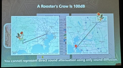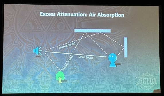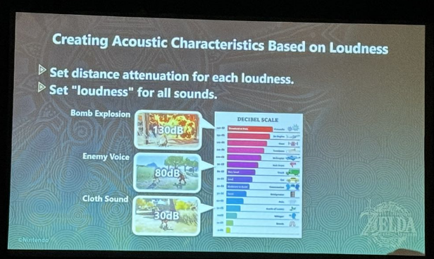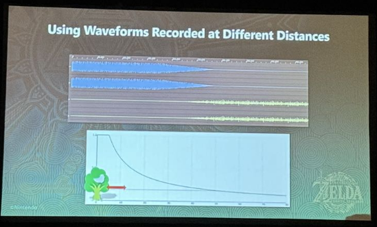随着Junya Osada以及音效团队的同事探索后,发现不同的声音在空气中的衰减率是不同的。而这一结果很快落实到游戏上——根据声音的性质的差异,在游戏中表现的衰减率也是不同的。