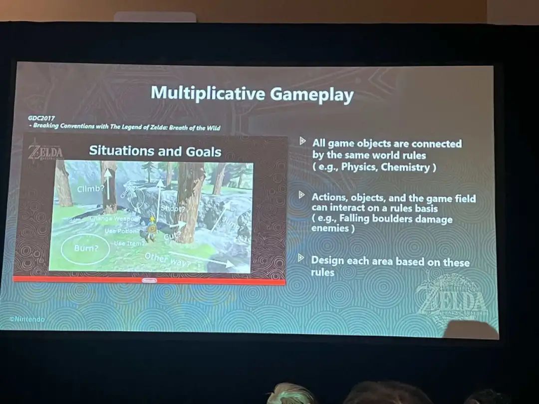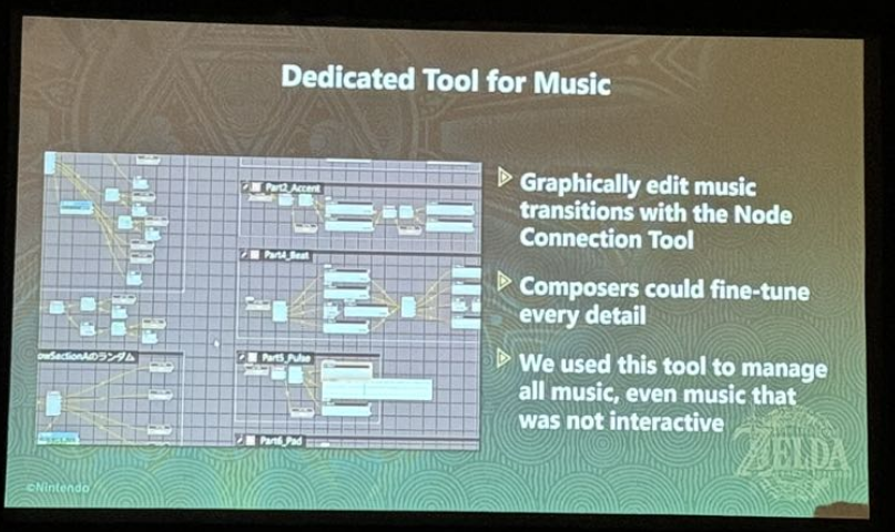 在这里Junya Osada卖了个关子,先从游戏的BGM讲起。“我们开始之前,你知道我们在塞尔达传说系列中做过各种类型的互动音乐吗?”,讲台下的听众纷纷表示肯定。