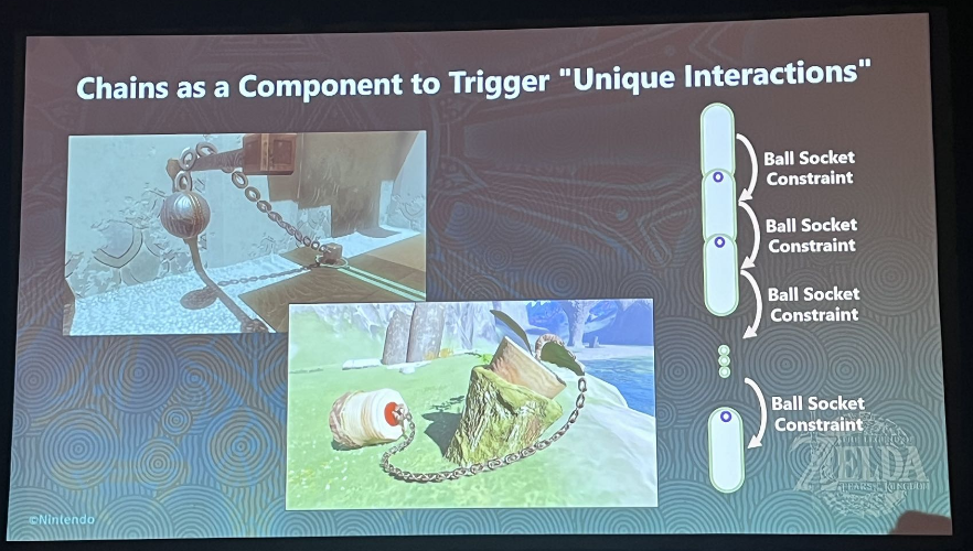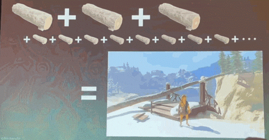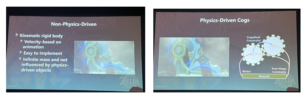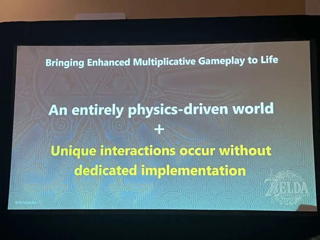 开篇,Takuhiro Dohta便直入主题,解释了将物理作为一切开放世界交互根基的理论基础——“一个高自由度的世界中,所有的交互内容都是物理驱动的,这包括所有物品道具的用途、玩家的各种能力等。这也让我们游戏中的任何情节无一例外,都是通过玩家、变化和物理规则的约束建立起来的”。