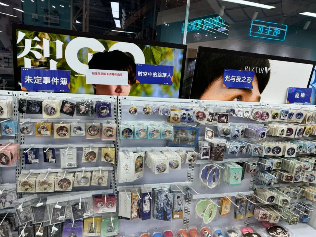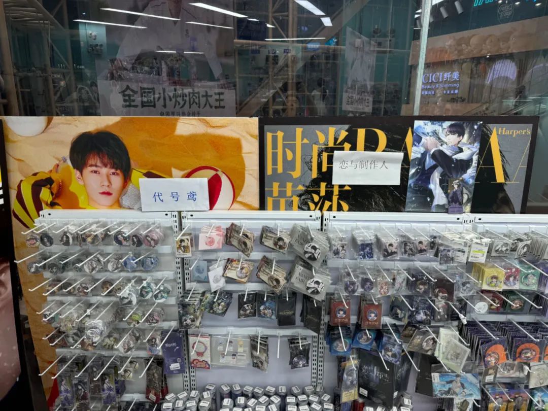 同样出身叠纸,《恋与制作人》和《恋与深空》在线下谷店的出场率又有差异。前者因为稳定运营相当长的时间,反而在线下谷店还有一定出场率。只是类别较少,又因为预售制度,上架周边总是比游戏版本慢,此时玩家已经完成预购,时间差的存在自然限制了用户的消费热情。《恋与深空》就受限于预售机制、上线时长等诸多因素,在线下谷店鲜少能被看到。