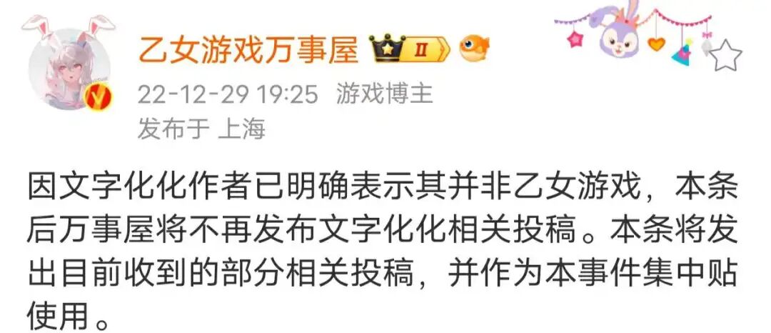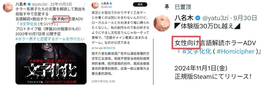 日本独立游戏制作者的创作自由和国产女性向玩家们约定俗成的规则发生冲突,语言隔阂和性格差异更是让这场冲突升级。直到今天,八名木还是一而再再而三地在自己的社交平台强调自己的创作自由,对日乙友好的微博bot“乙女游戏万事屋”也在22年发布声明不再接受《文字化化》相关投稿。