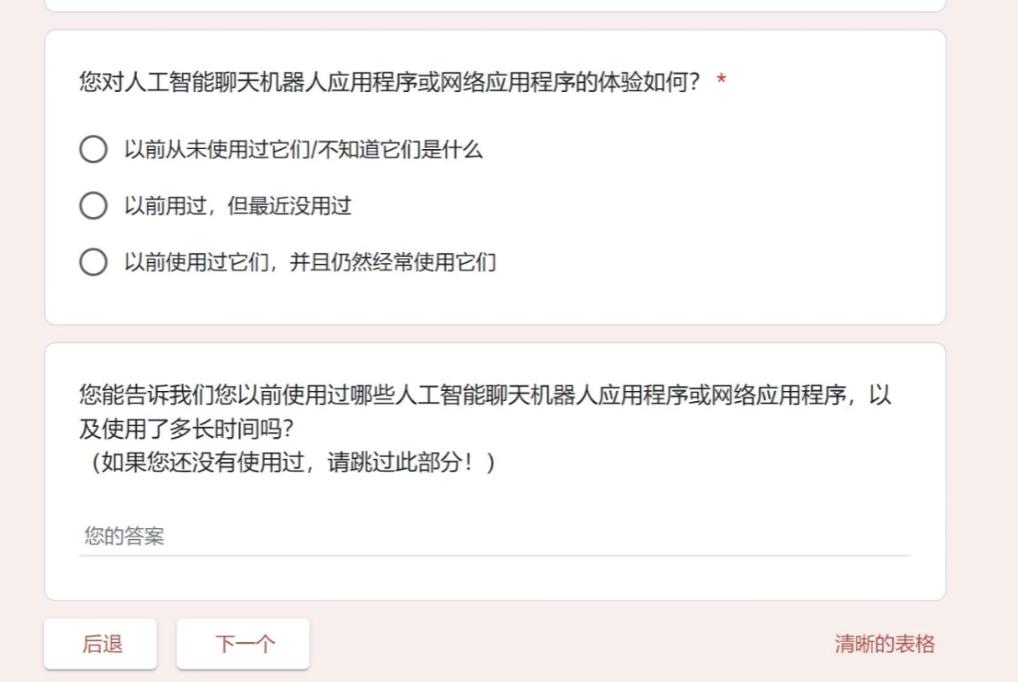 在招募公告中,《Project Star》被描述为一款互动太空生存故事游戏,你的每一个选择都决定了主角的命运。而值得注意的是,在注册问卷中特别询问了对人工智能聊天机器人应用程序或网络应用程序的体验,以及参与者使用过哪些人工智能聊天机器人以及使用了多长时间等问题。