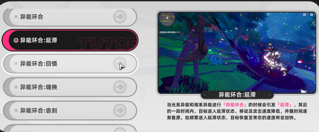 相对于两者而言,《异环》选择了折中的方案,一方面通过极限闪避、极限反击、破韧等战斗机制,保留了一定的动作体验,同时也加入了类似元素反应的设定,释放技能积累“环合系数”可以触发其他角色的qte,不同元素角色触发QTE可以实现不同的攻击效果,强调了战前的阵容搭配。