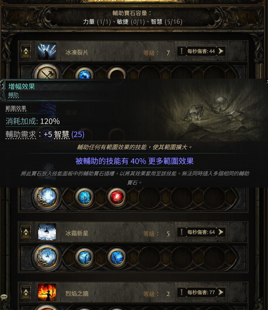 这样的好处是能够让技能的学习不在受到装备孔位的限制,进而让玩家更早的进入BD构筑的环节,例如在第三章左右,在解锁了高级技能石的获取途径后,玩家便已经可以着手搭配更为强力的构筑方向。同时“技能辅助石”对技能的二次增强,也并不会让玩家的构筑核心限制在某一两个强力技能上,在BD构筑上更加灵活。