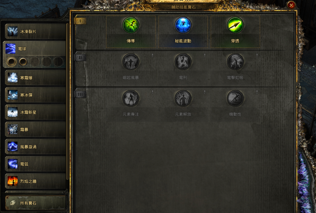 首先是技能部分,《POE2》由前作的“装备镶嵌技能石”的形式变为“使用技能石学习技能”的模式,同时也加入了“技能辅助石”来对技能的形态、数值等进行定向强化。