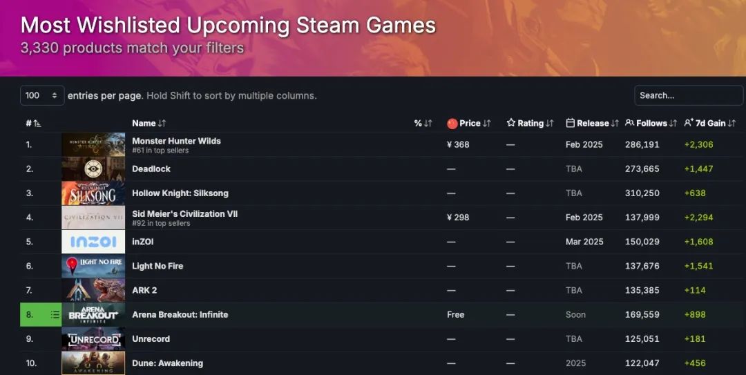 目前来看,魔方第一次尝试端游的成绩还有待验证,海外5月封测和8月EA获得了很高的热度,积累了200多万的steam心愿单,排名全球第八,但是毕竟还未在Steam正式上线。
