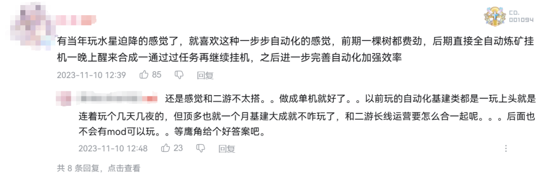 从去年一测的一些视频评论来看,玩家的主要反馈还是在战斗、角色建模和担心怎么做商业化上,至于流水线玩法和终末地将呈现的世界观,大多数玩家还是表示了期待。