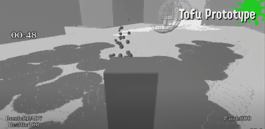 在最初的设计中,玩家在平面上使用WiiU来操作“豆腐”一样的长方体,喷出黑色或白色的颜料到地上,以4V4的形式战斗,最终以团队的涂地面积决定胜负,这是游戏的核心玩法。此外玩家可以喷颜色到其他玩家身上来击杀对方,或躲在颜料中隐藏自己等核心设定此时也已经出现。想要获胜就要涂地,但涂地就会被其他玩家发现,他们认为这正是游戏最有趣的地方。