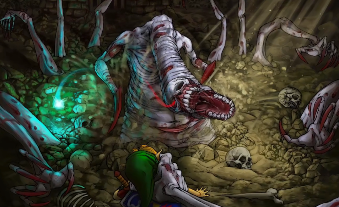 但想要通过惊艳的场景演出来制造奇特桥段并不容易,更多的游戏会采用区别于常态游戏体验的内容来创造奇特的游戏体验,而恰好恐怖元素也是最能够“直击玩家心灵”的内容元素,因此我们能够在很多非恐怖游戏中见到包含恐怖元素的桥段(例如:《塞尔达传说:时之笛》中的地底BOSS“死亡之手”)。