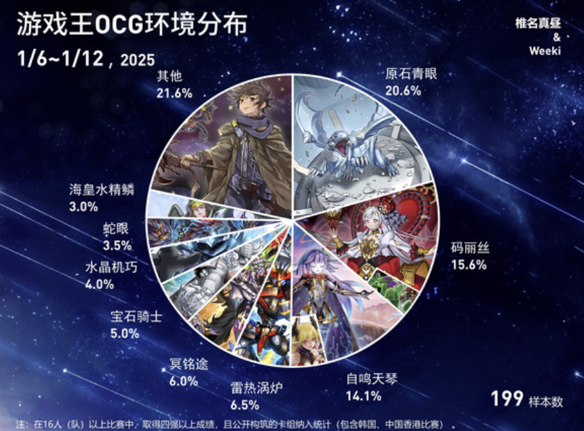 最经典的便是“青眼白龙”,其作为游戏王的招牌怪兽,存在大量的收藏党,情怀党,动画党。在经历了预组SD47的补强,以及“原石轴”的加入后,青眼白龙卡组一跃成为了环境中的一线竞技卡组,一段时间更是荣登饼图第一的宝座。